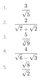 DEBER # 5. Resolver los siguientes ejercicios sobre racionalización.